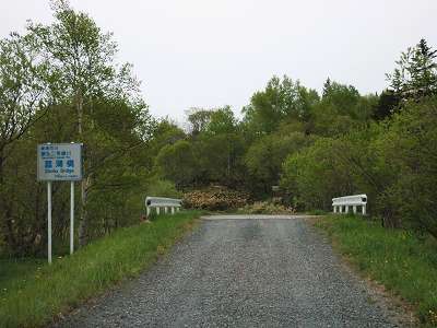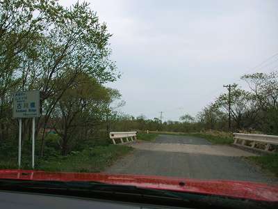 水深標の近くに猿払二号線川を菖蒲橋で渡る。どの橋にも言えるけど、橋だけ高い位置にある。橋の名前から、この辺には菖蒲が群生しているのだろうか?(34)。 暫く進むと、林道サマキシリ線が右手に分岐し(35)、すぐ脇には、今までの川の中ではやや幅のある成田川を楓橋で越える(36)。橋を渡ってすぐにも分岐する道もあるが整備がされていない感じ。