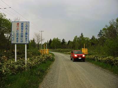 やがて、浅茅野市街に入り、国道238号にぶつかり道道732号上猿払浅茅野線は終わる。 全長約19キロ。 路面★★☆☆☆ 景色★☆☆☆☆ 道路脇の水深標の日常生活における珍しさ★★★★☆ 2005年6月4日訪問 水没道道732号 上猿払浅茅野線 その1 へ 水没道道732号 上猿払浅茅野線 その2 へ |