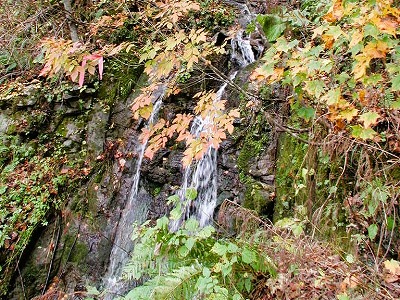約6キロ地点にゲートがあり(9)、この先は山岳地帯となっていく。途中小さな滝もあった(10)。