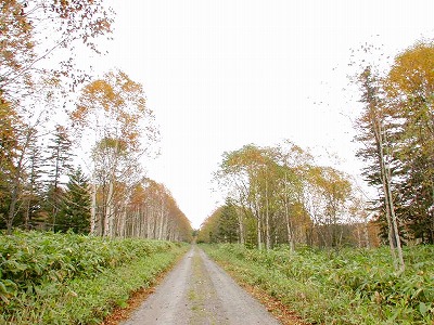 フラットダートの走りやすい道で(4)、パンケニコロ川と平走し、紅葉も綺麗で走っていて楽しい(5)。なお、晴れていればもっと良かったであろう。約4キロ走ると分岐がある(6)。