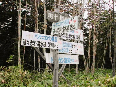 シートカチ林道お知らせパンケニコロベツ林道の次は、 シートカチ林道 シートカチ、シーは大きなとか真のって意味だから、十勝川の本流って意味。他にもポン十勝川(ポンは小さいとか支線の意)もある。 奥十勝峠にある案内板(1、2)からシートカチ林道となる。