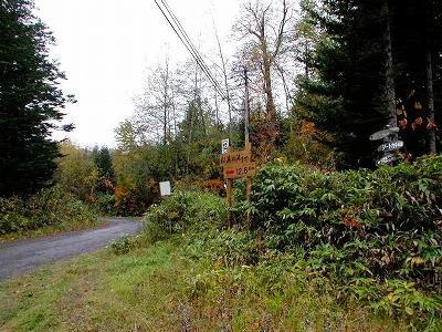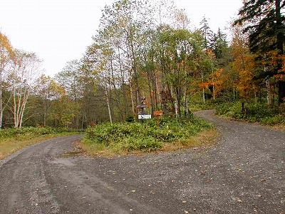 オプタテシケ山が見える区間は約2キロの真っ直ぐな下り坂である(5)。今回、天気がよければ絶景であることは間違いないであろう。案内板から5キロ程でシートカチ第5支線の分岐が現れる。十勝岳登山口、秘奥の滝への入口である(6、7)。